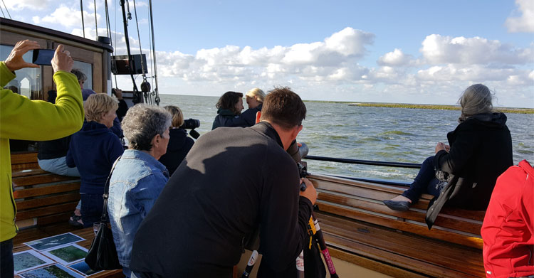 Handige merktekens in het landschap om je op te richten bij het varen óf om vogels aan te wijzen, bijvoorbeeld 'je ziet de middelste kerk, dan ga je met je kijker naar links, onder het bovenste eiland en dan bovenin de engelwortel, ónder die meeuw zit een..' enz.