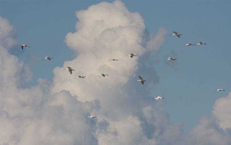 Als het donker begint te worden zien we de eerste groepjes zwarte sterns. Ze vliegen over ons heen naar de slaapplaats op het eiland.