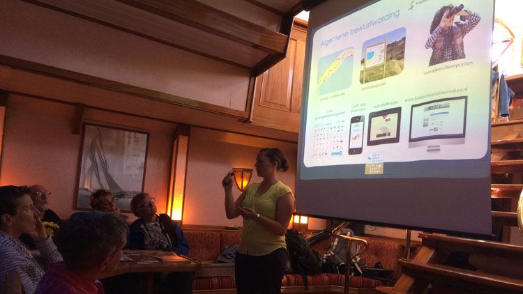 Natuurlijk ook vandaag een presentatie bij het thema. Jonna van Ulzen werkt voor Vogelbescherming Nederland aan het project 'Rust voor Vogels, Ruimte voor Mensen'.