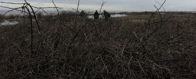 Een groot deel van de bramenstruiken was opvallend wit gekleurd met vogelpoep, het lijkt alsof er grote groepen spreeuwen naar het eiland komen om daar te slapen. Slapen ze er nog steeds en, zo ja, hoeveel zullen het er zijn?