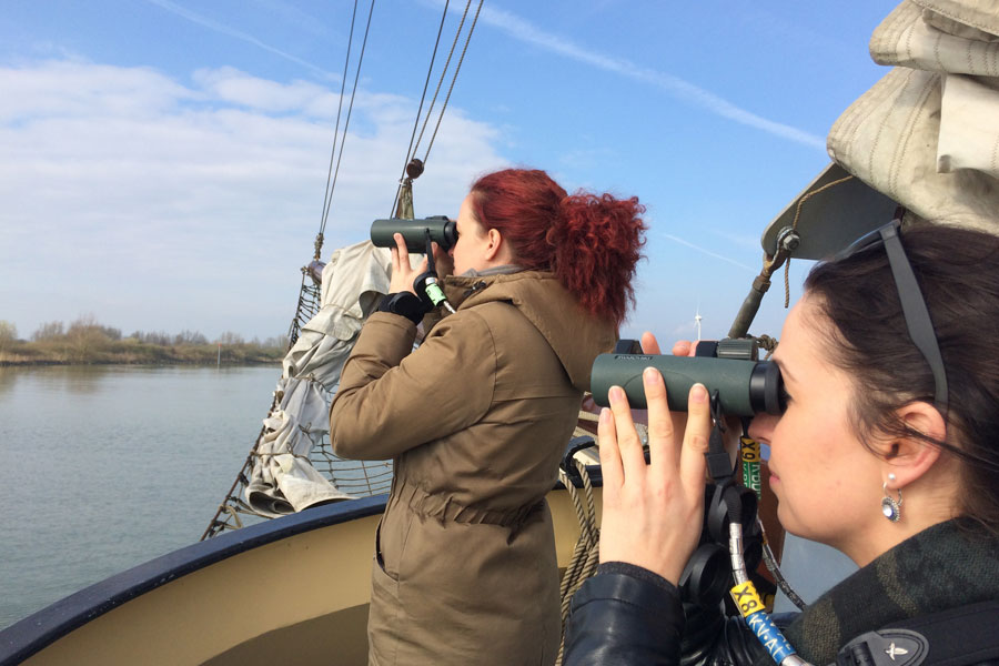Zeilen met de prachtige 'Schuttevaer' is al een beleving op zich. Men kan er voor kiezen om actief mee te zeilen of zelf aan het roer te staan. Maar dit hoeft natuurlijk niet. Op het dek vind je veel (zit)ruimte en kunt je goed naar de vogels kijken. Als je een telescoop hebt, is er voldoende ruimte om deze te gebruiken.