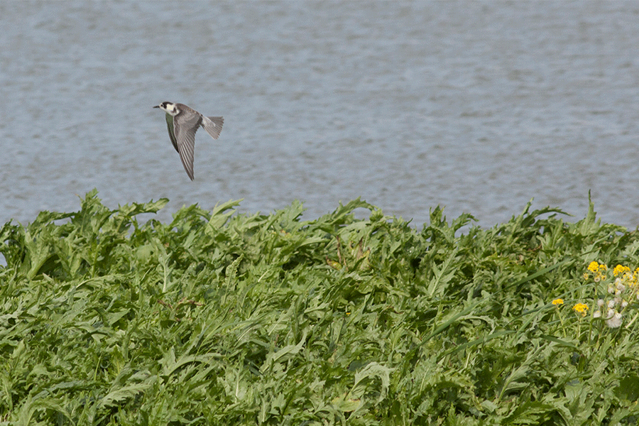 Afgelopen twee jaar maakten flinke groepen oeverzwaluwen gebruik van het eiland. Tussen de zwarte sterns zoeken we naar witvleugelsterns en maken we kans op dwergmeeuwen.